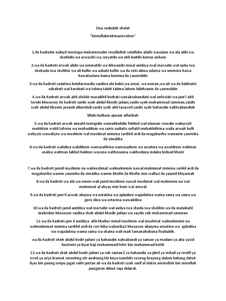 Ila Hadroti Wa Asy / Do A Sesudah Shalat Religious Belief And Doctrine Religious Faiths. Academia.edu is a platform for academics to share research papers. Sayyidi syeh abdul qodir al jaelani min baghdadi ra wa ila hadroti : Sayyidi syeh abdul qodir al jaelani min baghdadi ra wa ila hadroti : Malaikat jibril wa mikail wa isrofil wa izroil ajmain as kum ya malaikatul muqorrobin ajmain as wa ila hadroti : Malaikat jibril wa mikail wa isrofil wa izroil ajmain as kum ya malaikatul muqorrobin ajmain as wa ila hadroti :